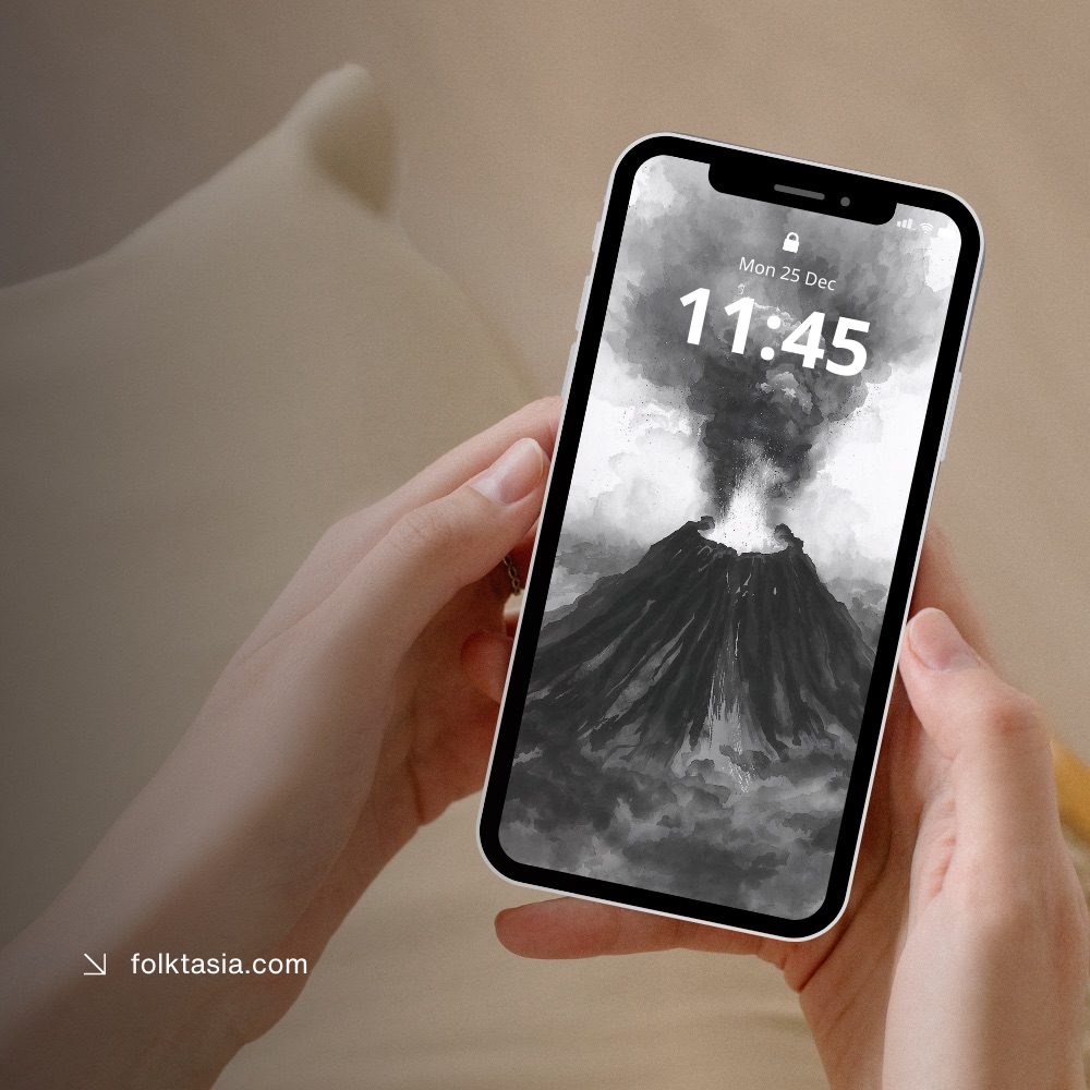 - Artistic Watercolor: A sophisticated black and white minimalist piece depicting an active volcano erupting, symbolizing the raw, explosive energy and unstoppable spirit of the Fire element.