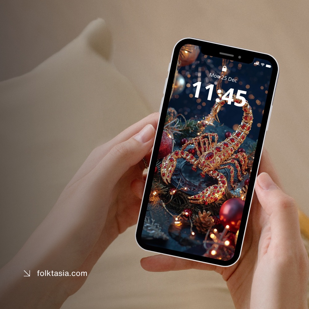 Celebrate Scorpio Season with Premium Digital Art Embrace the intense and mysterious energy of Scorpio with this exclusive five-piece wallpaper bundle. This collection is curated to offer a variety of visual experiences, from festive luxury to minimalist fine art, reflecting the powerful and transformative personality of the Scorpion.